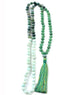 This TRUE HEART OMBRE Heart Chakra Mala has 108 Aventurine, Moss Agate and Amazonite gemstone beads (8mm) tied in a traditional 108 pattern. It has been hand knotted on silk cord with one knot between each gemstone. It has a Moss Agate guru bead and has been finished with a 'shades of green' and gold handmade tassel.